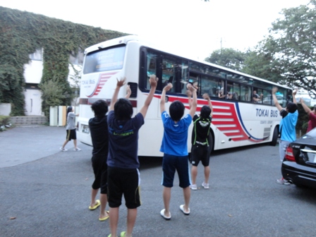 中学生は全国制覇を誓い、バスは時之栖を出発。
