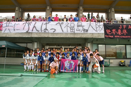 試合後、セレッソのサポーターの方々から「共にがんばっぺ福島from大阪」と書かれた大きな横断幕をいただきました。
