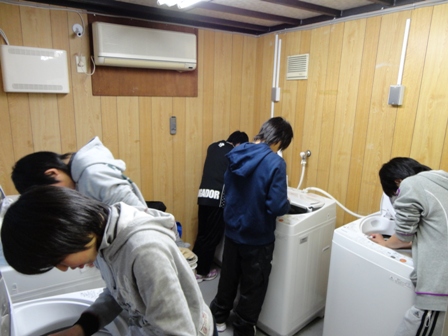 中学生は学年にごとに、中1はランドリー、中2はボール磨き、中3はB棟と役割を決めてから始めました。