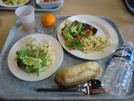 昼食はビュッフェ形式で最初にサラダを取ってから、三種類の主菜の中から一つ選び
