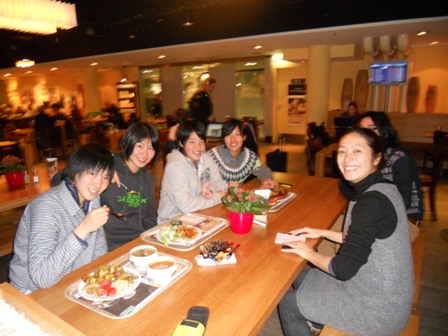 空港の中の緑の牛がいるお店で、私たちのお手伝いをしてくださる、吉泉さんと鈴木さんと合流しました。