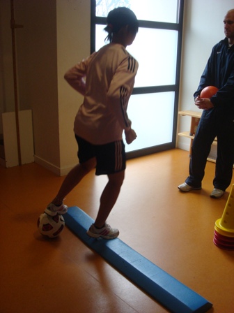 理学療法士のリオネルさんが練習メニューを考え、マンツーマンで指導してくれています。