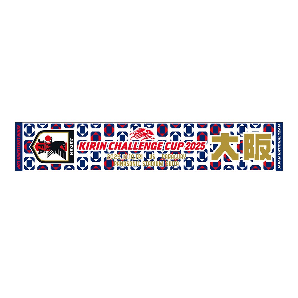 キリンチャレンジカップ2025の対戦相手、試合日、試合開催地が入った限定デザインのマッチデーグッズを販売します。