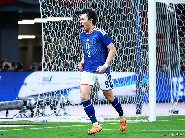 この3枚替えの直後に、堂安選手からの右クロスに上田選手が頭で合わせて相手ゴールを脅かすと、その3分後の71分には右サイドの堂安選手からペナルティエリア右に入った中村選手へパス。ダイレクトでマイナスのボールを折り返すと、中央に走り込んだ町野選手が押し込んで、日本が2-0としました。