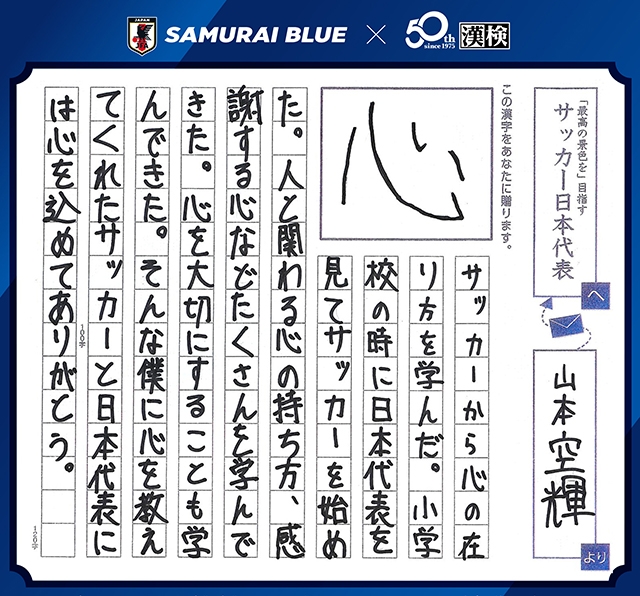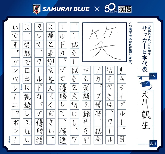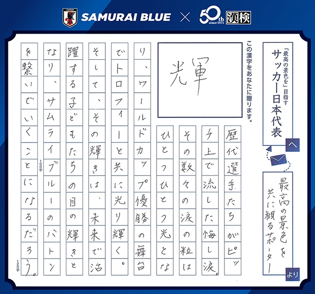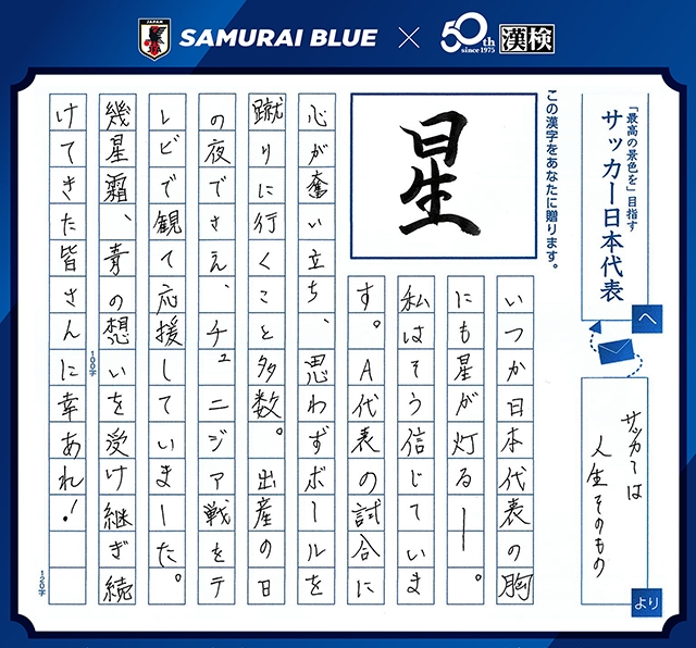 今、あなたに贈りたい漢字コンテスト「SAMURAI BLUEを応援しようキャンペーン!」受賞作品