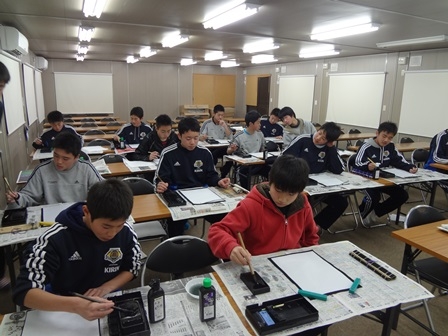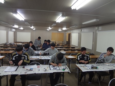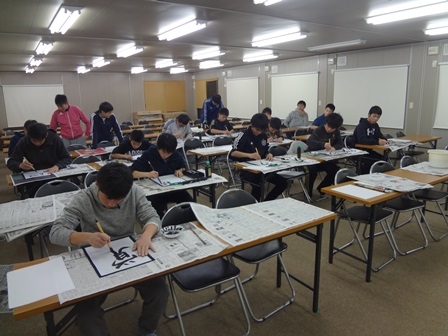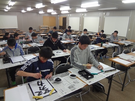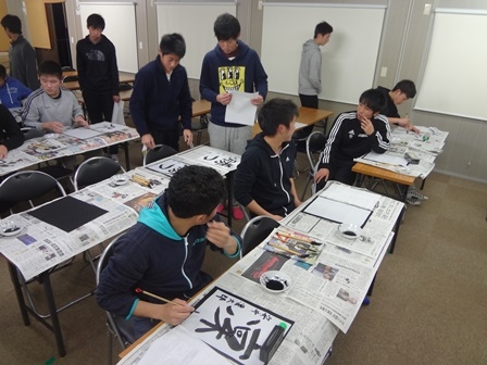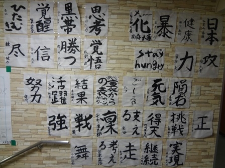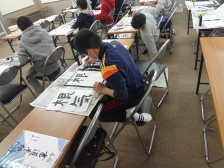 テーマは自由。それぞれが考え、その気持ちを半紙に書き写しました。