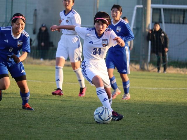 1月17日から18日の2日間、J-GREEN堺にて「J-GREEN SAKAI Lady’s Festival U-15」が開催され、JFAアカデミー堺からは2チームを編成して大会に出場しました。JFAアカデミー堺は、週末帰省型のアカデミーです。練習試合はあっても公式戦に参加することはありませんが、普段お世話になっているJ-GREEN堺が主催してくださる大会には毎年参加しています。それぞれ週末や長期休暇に活動している所属チームをはじめ、各地域から参加するチームと対戦できるので、選手たちの闘志は一層高まります。天候にも恵まれ、1月らしくない暖かさの中で2日間プレーすることができました。