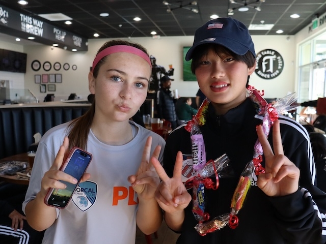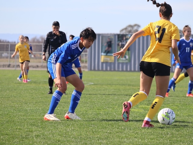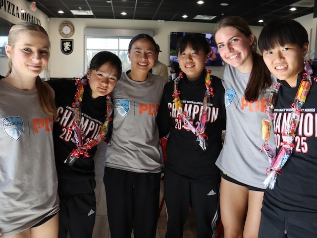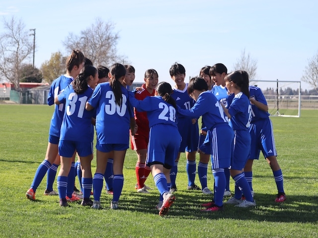 今日はアメリカ遠征最後の試合をしました。相手はNorCal PDP North でした。Northは、対戦する3チームの中で一番強いと先輩から聞いていたのでみんな気合が入っていましたが、実際にアップをしているところを見ると今までのチームよりも身長が高く、より一層緊張感が高まりました。そんな中でも勝ちたいという強い思いと集中力をもって挑みました。アメリカでの3試合目という事もあり、相手のフィジカルやスピードにも対応できるようになってきて、相手陣地でボールを奪える回数がこれまでの試合より増えました。しかし、相手はアンカーを上手く使ってビルドアップするので、マークの受け渡しが大変でした。そんな中で前線からのプレスがうまく行き、相手陣地でボールを奪い、得点チャンスを何度も作れたものの、決めきることが出来ずに最後に同点に追いつかれてしまいました。自分たちのチームとしての課題は決めきることだと感じました。相手は寄せも速く、その寄せのスピードも日本ではなかなか経験できないレベルでした。ボールを持つとすぐに寄せられるので、ダイレクトで味方につけ、そのままサポートに行き、前向きでボールをもらえるように動きを考えたりしました。今回の貴重な経験を活かして、帰国後も目標に向けて努力を続けます。